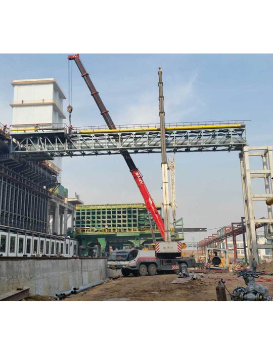 橋式起重機(jī)是橫架于車間、倉(cāng)庫(kù)和料場(chǎng)上空進(jìn)行物料吊運(yùn)的起重設(shè)備。由于它的兩端坐落在高大的水泥柱或者金屬支架上,形狀似橋。橋式起重機(jī)的橋架沿鋪設(shè)在兩側(cè)高架上的軌道縱向運(yùn)行,可以充分利用橋架下面的空間吊運(yùn)物料,不受地面設(shè)備的阻礙。它是使用范圍更廣、數(shù)量更多的一種起重機(jī)械。